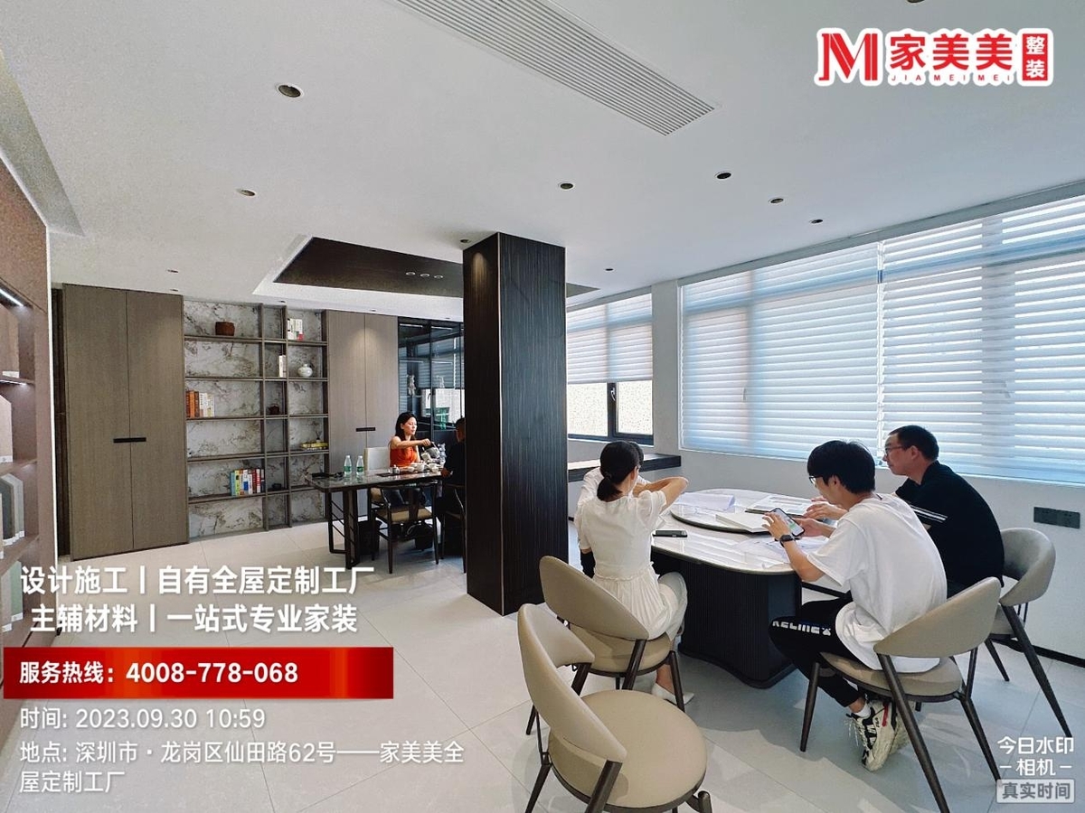 公司引进高端智能制造设备,甄选全球环保板材,进口德国胶王胶水,员工均为从业多年的优秀精英。目前在深圳拥有两大展厅(家美美整装展厅、家美美全屋定制展厅)、一大生产制造基地。全屋定制秉承:定制即是专属,绝不随波逐流,生活需要喜悦,我们为您塑造。我们的服务理念是:把产品做精,把服务做细,把投诉降为零。高标准,严要求。有瑕疵不出厂!