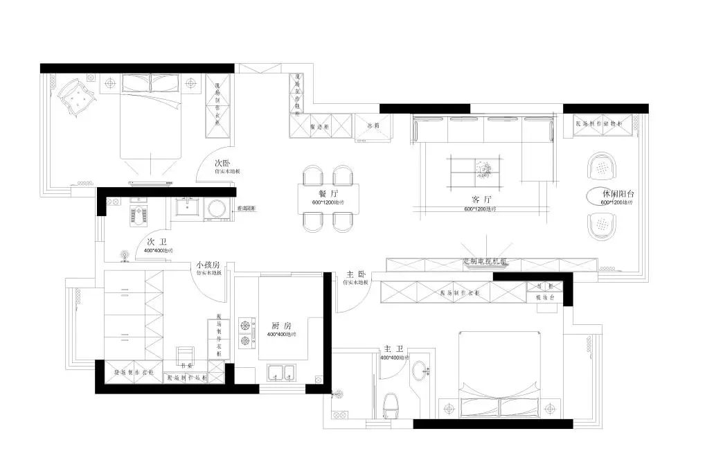 ▲ 本案面积110.5㎡,三居室,且分开而设,保证居住者都拥有独立的空间。坚持客餐厅一体化布局,纳入休闲阳台,延伸空间纵深感。对主卫空间的墙体进行改动,充分扩大主卧空间。