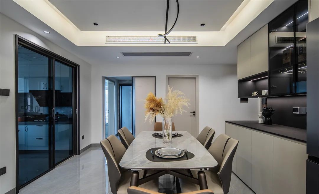 ▲ 餐厅,以实用与舒适为重点出发,功能完整齐全,简洁且大方。挑选现代风餐桌椅,搭配造型感艺术吊灯,兼具实用性和美观性。